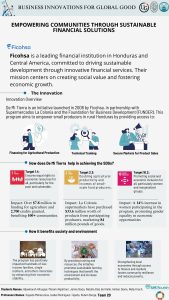 Grupo Ficohsa, a financial institution in Honduras, employs innovative practices focused on sustainability and community support, emphasizing three core pillars: education, entrepreneurship, and financial inclusion. These pillars align with United Nations Sustainable Development Goals (SDGs) such as “No Poverty” (SDG 1), “Zero Hunger” (SDG 2), and “Reduced Inequalities” (SDG 10) (THE 17 GOALS | Sustainable Development, n.d.). Programs like “De Mi Tierra,” Fundación Ficohsa, and “Mujeres Adelante” bring these pillars to life, reflecting an impactful integration of sustainability and resilience. Karla Simon’s genuine focus on sustainable development in Honduras inspired us, as her vision to embed corporate social responsibility within a financial institution is encouraging in a field often criticized for prioritizing profit over people. Seeing Ficohsa’s commitment to uplifting vulnerable communities and fostering social responsibility has reshaped our perspective on sustainability within finance. Often, we think that sustainability is the responsibility of companies, but in reality, we can all contribute, by volunteering and offering our own small efforts, we support the larger goals companies work toward. Ficohsa’s view of people as more than numbers or accounts, but rather as valued individuals, is a reminder that people should support one another, a value not often highlighted in Honduras. It’s truly admirable.